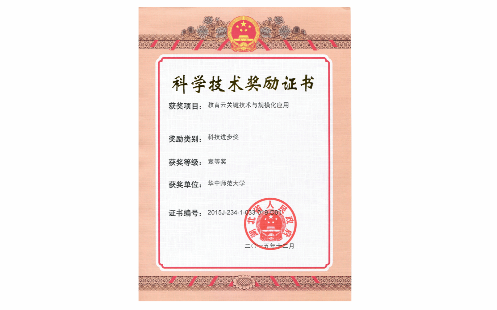 First Prize of the Hubei Provincial Science and Technology Progress Award — Key Technologies and Large-Scale Applications of Educational Cloud Systems