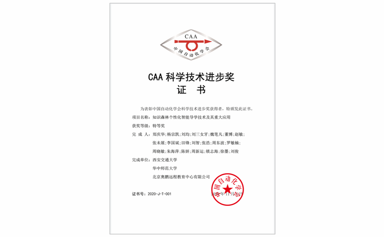Grand Prize of the Science and Technology Progress Award by the Chinese Association of Automation — Core Technologies and Major Applications of Personalized Intelligent Tutoring Based on the Knowledge Forest Model