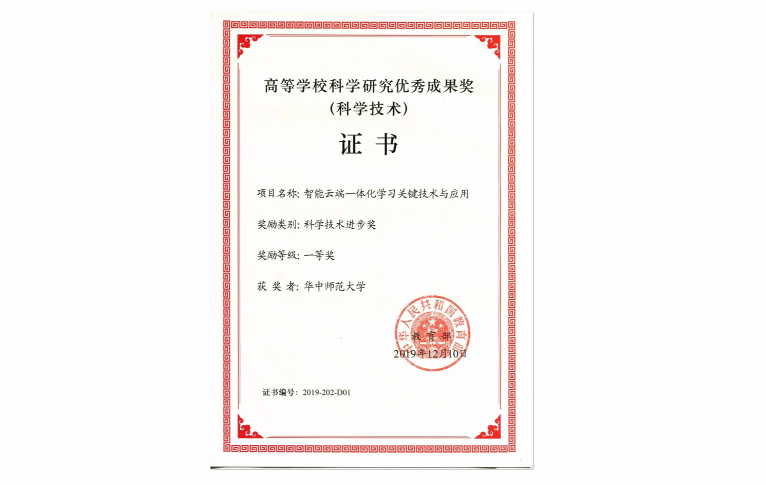First Prize for Scientific and Technological Progress in Higher Education — Core Technologies and Applications of Intelligent Cloud-Based Smart Learning