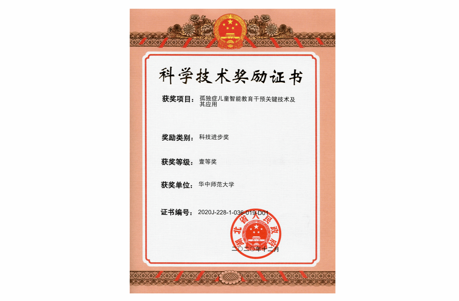 First Prize of the Hubei Provincial Science and Technology Progress Award — Core Technologies and Applications of Intelligent Educational Interventions for Children with Autism