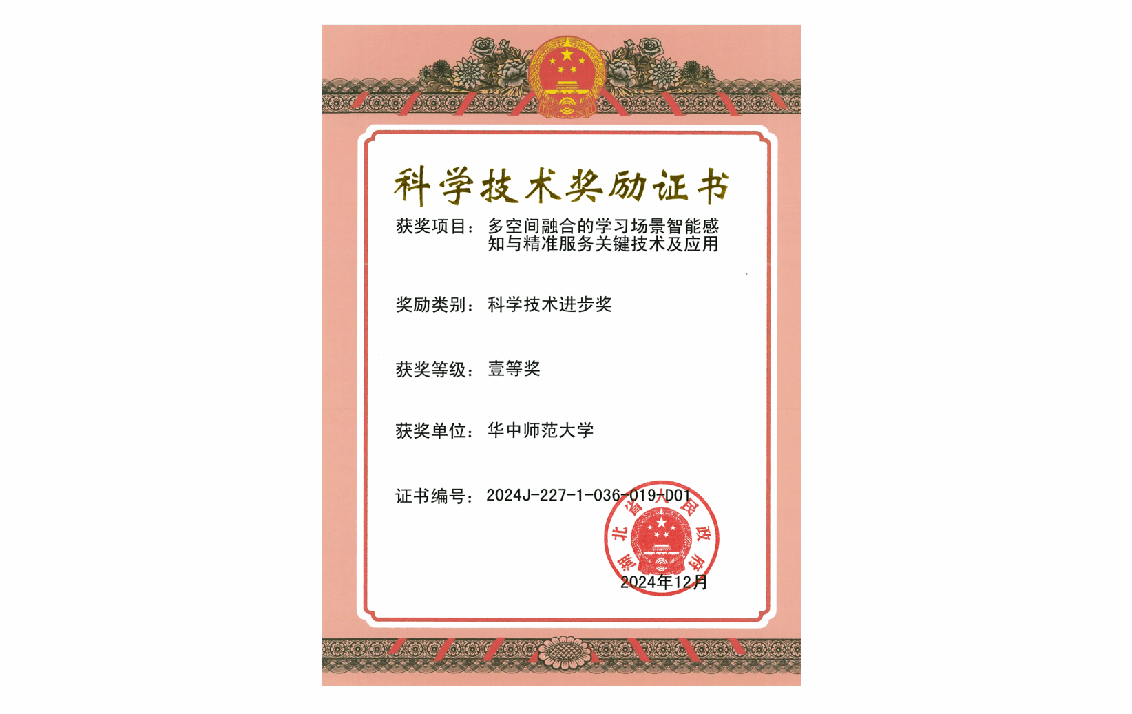 First Prize of the Hubei Provincial Science and Technology Progress Award — Core Technologies and Applications for Intelligent Perception and Precision Services in Integrated Multi-Modal Learning Environments