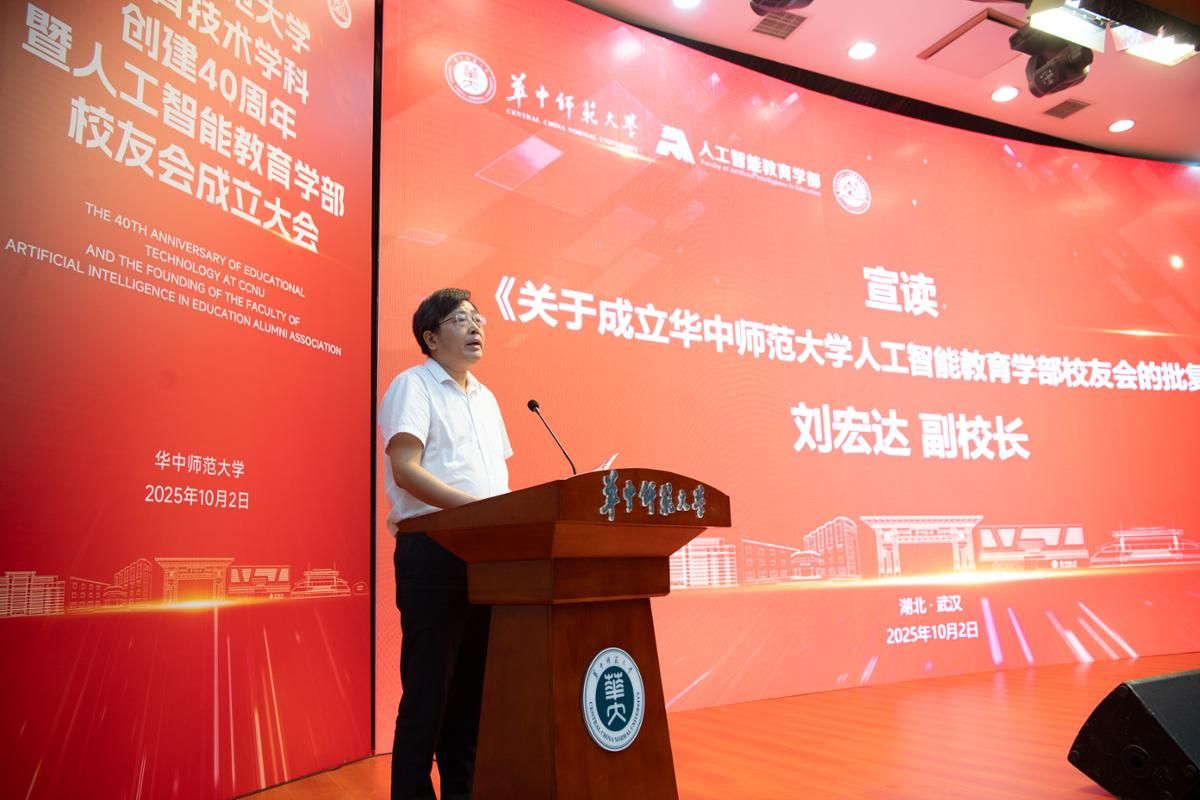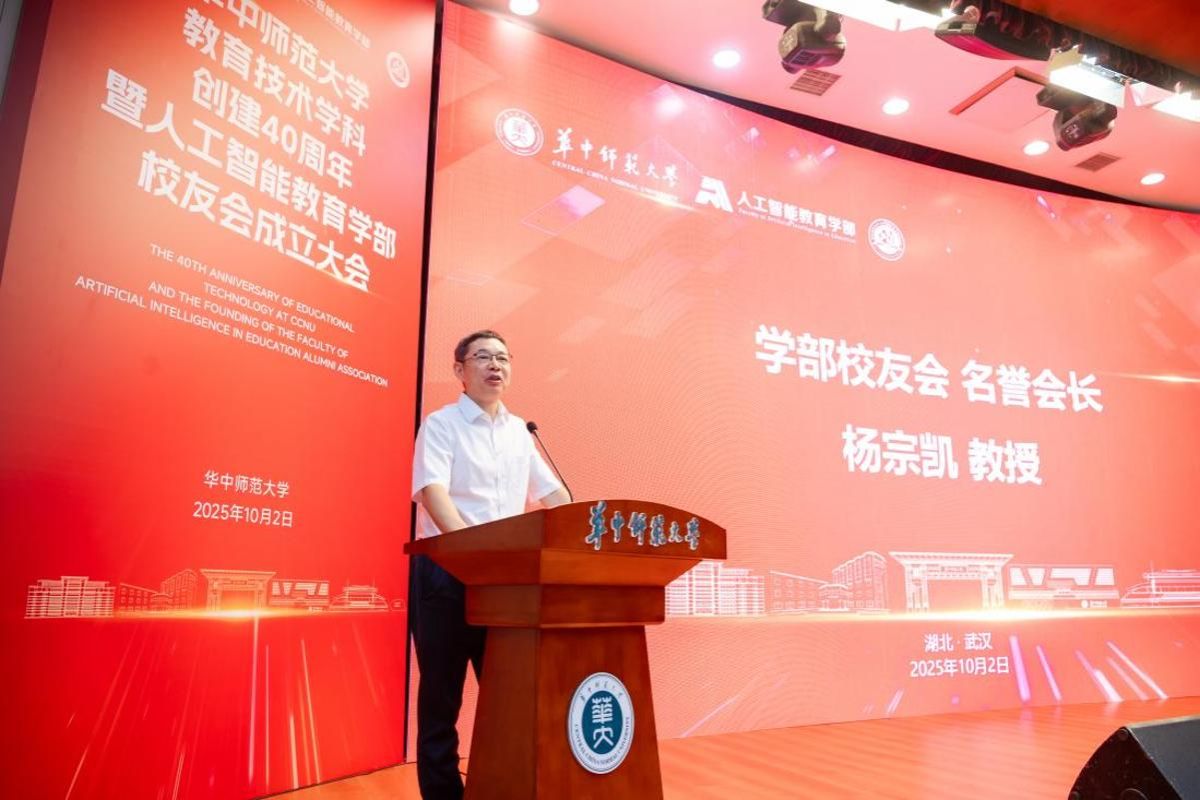 On October 2, 2025, the ceremony marking the 40th anniversary of the establishment of the Educational Technology discipline and the inauguration of the Alumni Association of the Faculty of Artificial Intelligence in Education was held at the Science Auditorium of CCNU. The event was attended by the following individuals (listed in no particular order): Shuangjie Peng, President of CCNU; Zongkai Yang, Director of the National Engineering Research Center for E-Learning (NERCEL) and the National Engineering Research Center for Educational Big Data (NERC-EBD), and Senior Professor of CCNU; Daolin Zha, Deputy Secretary of CCNU Party Committee; Two Vice Presidents of CCNU, Hongda Liu and Sannyuya Liu; Zhiting Zhu, the Tenured Professor of East China Normal University; Jiyou Jia, Director of the Department of Educational Technology in the School of Education at Peking University and Director of the International Research Center for Educational Informatization; as well as representatives from various university departments, schools (faculties), faculty members, students, and alumni of the Faculty of Artificial Intelligence in Education.