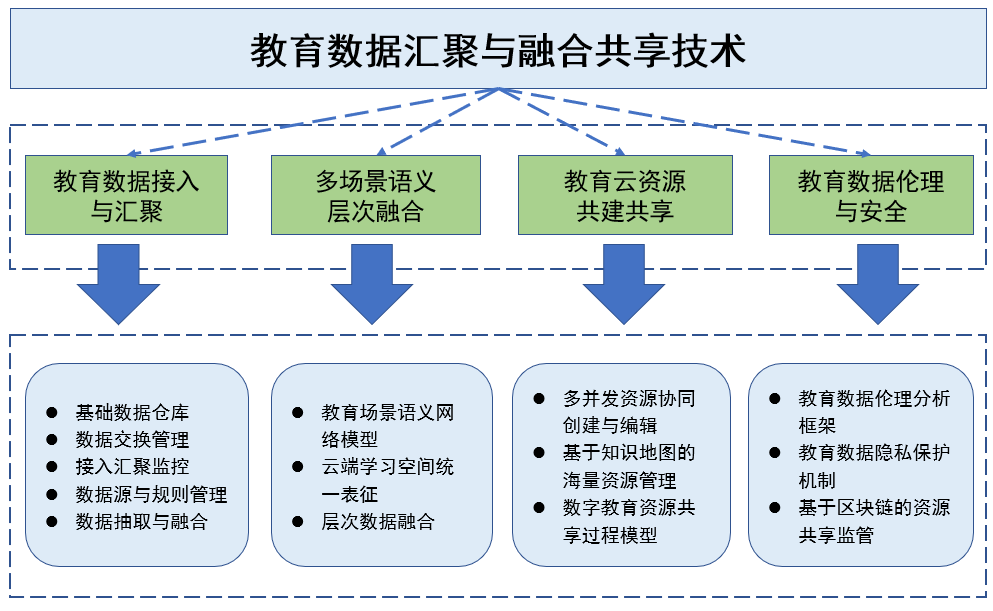 Educational big data today comes from many different sources and can be complex and difficult to manage. At the same time, it’s important to protect privacy and follow ethical standards when using this data. To tackle these challenges, this research has developed new, easy-to-use technologies. These include using crowdsourcing to bring together educational resources, connecting different learning environments in a meaningful way, sharing cloud-based educational tools, and ensuring strong privacy and data protection. Together, these efforts make it easier to combine and safely share data while respecting privacy and ethical guidelines.