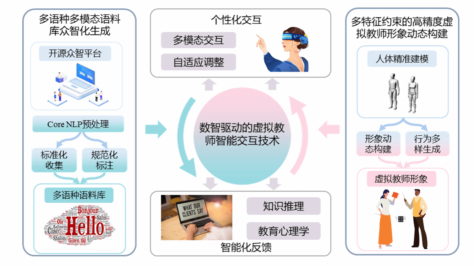 This project addresses important challenges in China’s foreign affairs and business sectors, such as the shortage of skilled small-language speakers and limited teaching resources, as well as the difficulty of creating effective, real-life learning scenarios. It focuses on key technologies for crowdsourcing the collection of multilingual and multimodal language data, and for enabling smart interactions with virtual teachers. Specifically, the project aims to build a standardized system for collecting this multilingual data through crowdsourcing; create detailed and realistic virtual teacher avatars by combining human shape and appearance features; and develop AI-powered interaction technologies that let these virtual teachers adjust dynamically to each learner’s needs. By solving these core technical problems, the project supports smarter language education for diplomatic and business purposes and helps train more skilled small-language professionals across China.