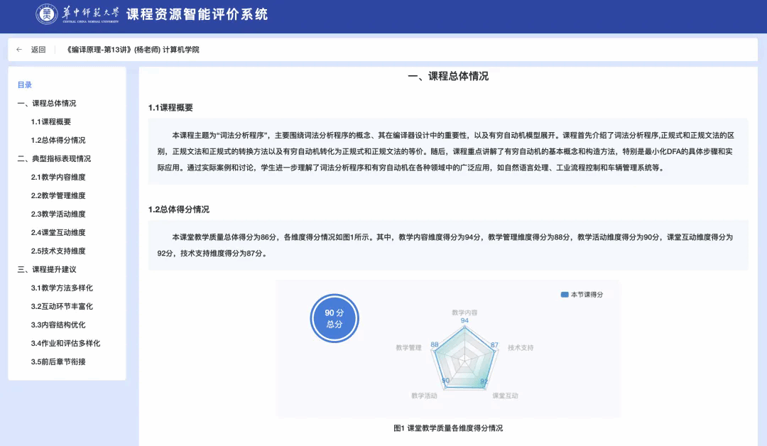 Based on a detailed study of the key factors that affect course resource quality, the research team created an evaluation framework covering teaching content, instructional management, learning activities, classroom interaction, and technical support. Using multimodal data analysis combined with large model technology, they developed an intelligent digital course resource evaluation system that provides deep insights and smart assessments of educational materials.