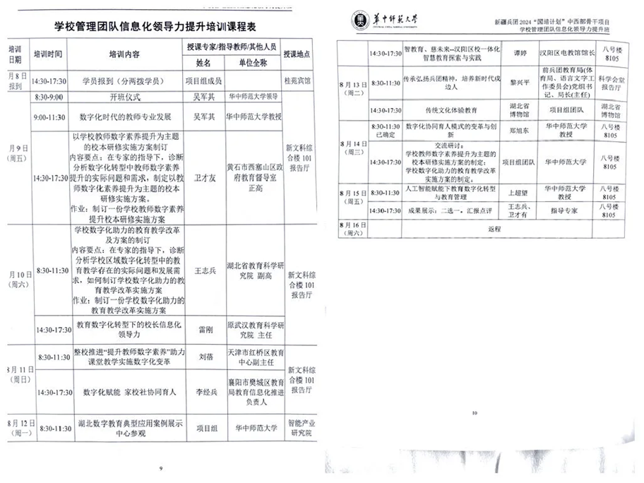 On August 9, 2024, the Training Program to Enhance Information Technology Leadership for School Management Teams under the Xinjiang Production and Construction Corps’ 2024 National Training Program officially began at Central China Normal University. The program is hosted by the Xinjiang Production and Construction Corps Education Bureau and organized by Central China Normal University.